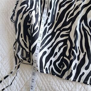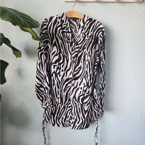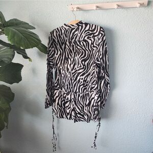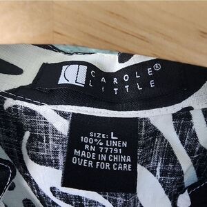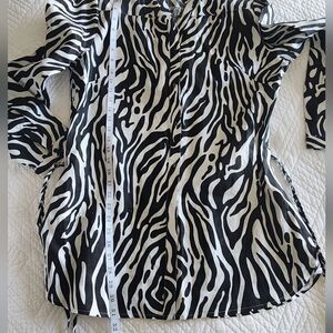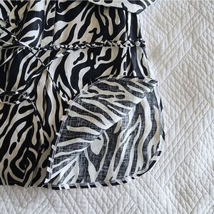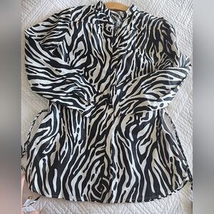 Carole Little 100% linen zebra tunic style button front brided belt blouse