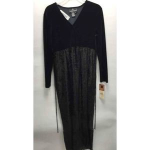 Carole Little NWT Black Long Velvet Overlay Wrap Maxi Dress - Size 8, Retail $178