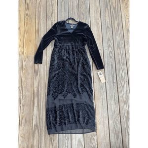 Carole Little NWT Black Long Velvet Overlay Wrap Maxi Dress - Size 8, MSRP $178
