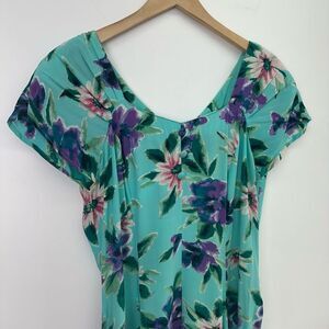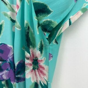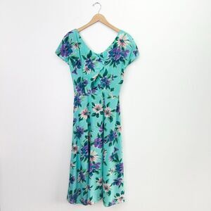 Carole Little Women’s Teal Floral Cap Sleeve Square Neckline Midi Dress