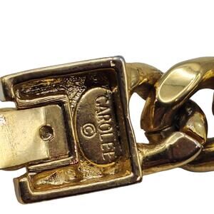 Carolee Gold Tone Curb Thick Chain Chunky Necklace Faux Pearl Onyx Vintage 80s