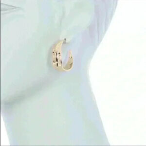 Carolee Iris Gold-Tone Plates Sterling Silver Pave Stone Hoop Earrings NWT