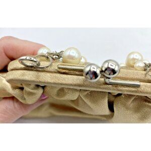 Carolee Mini Handbag Gold Satin Beaded Handle Evening Clutch Kiss Lock Purse