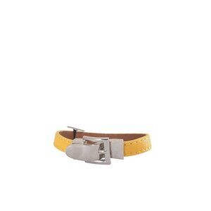 A Carolee New York yellow leather cuff belt bracelet featuring a silver toned belt closure. The belt closure has a magnetic closure. Measures approximately 7 inches from end to end in length and 0.3 inches in width. Great condition except for some minimal barely noticeable cracks besides the buckle closure, see images. This bracelet is brand new and has never been worn.