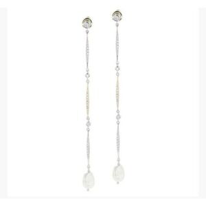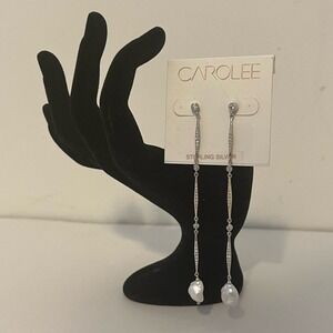 Carolee River Freshwater Pearl Linear Cubic Zirconia Drop Earrings