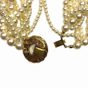 Elegant one of a kind unique Carolee torsade multi-strand faux pearl bead necklace with amazing large pearl closure.