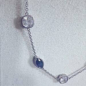 Carolee Uptown Girl Sapphire Crystal Illusion Collar Necklace Blue Silver tone