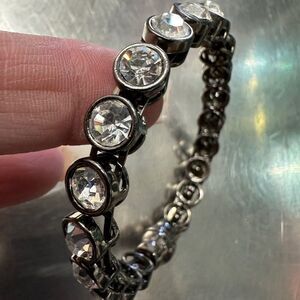 This Carolee VH1 Save the Music bracelet is a rare, collectible piece featuring a sleek gunmetal-tone finish and brilliant round-cut rhinestones. The back of each link is engraved with “VH1 Save The Music,” celebrating a meaningful cause that supports music education.