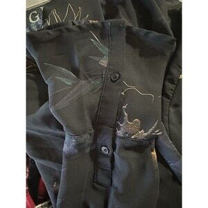 Carolina Belle Blouse Black Floral Print Lightweight Bell Sleeve Tie Neck Sz SP