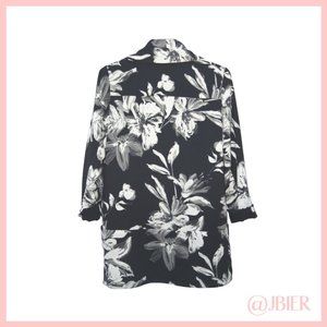 Carolina Belle Floral Print Blazer features embroidered details and a large lapel with rolled sleeves. Style with our Gucci Black Leather Pumps for your next girl boss business meeting. Composed of 100% Polyester. Excellent Condition.