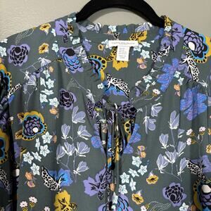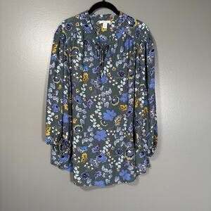 Carolina Belle Gray & Blue Floral Boho Peasant Top - Size 3X - Women's Plus Size