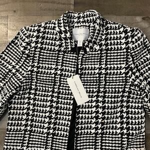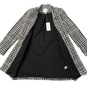Carolina Belle Long Coat Plaid Houndstooth Classic Women's sz S White Black
