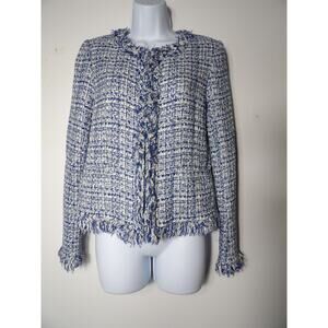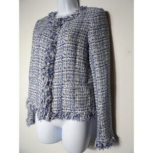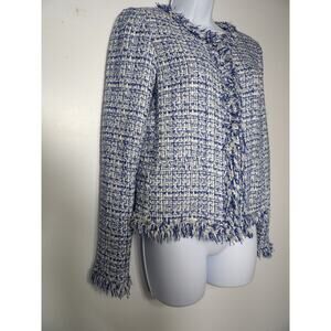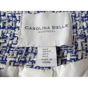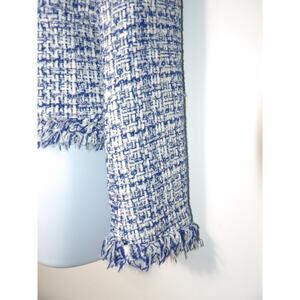 Carolina Belle Montreal Blazer Cardigan Small Tweed Blue Silver White Woven Artsy Career
