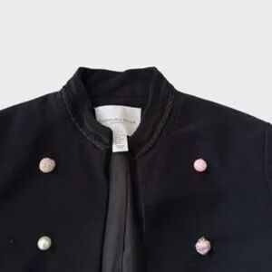 • Subtle braided trim along the collar and cuffs adds refined texture