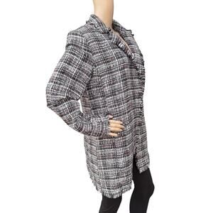 Carolina Belle Montreal L Tweed Fringed Open Front Jacket Notched Lapel Blazer