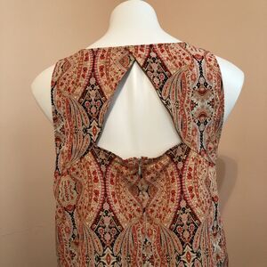 Pink Blue Paisley Boho Sleeveless Sheath Dress Lined Geometric Print Cut Out