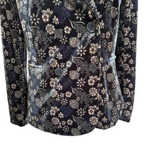 Carolina Belle Montreal Velvet Blazer XS Navy Blue Beige Floral Double Breasted