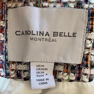 Carolina Belle Tweed Jacket Women Size Medium Cropped Blazer Multi Zip Up Fringe