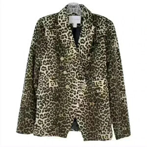 Carolina Belle leopard print blazer with shoulder pads and brass colored button