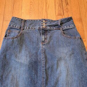 Carolina Blues 8 Blue Jean Denim Maxi Skirt Modest Home School Yellowstone Front