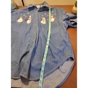 Carolina Blues Blue Denim Embroidered Snowman Button Down Shirt Women's Size 16;
