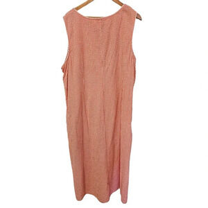 Carolina Blues Checkered Midi Dress in Orange. Size 26. Features crew neck, sleeveless, checkered print, and midi length. Style F6E33EB. 100% Cotton. Excellent pre-owned condition, no flaws.