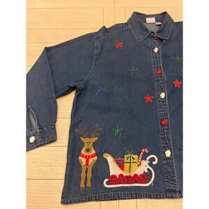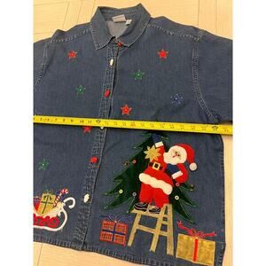Carolina Blues Plus Christmas Holiday denim button down long sleeve top. Sz 18W