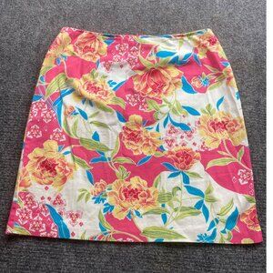 Carolina Blues Skirt Womens 12 Orange Pink Floral Stretch Tropical Pencil Beach