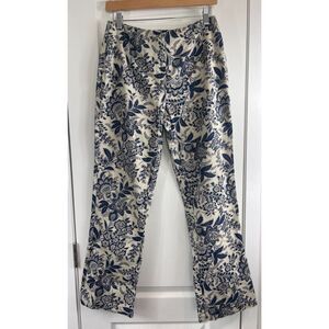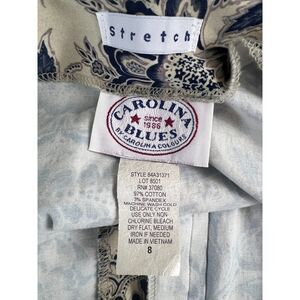 Carolina Blues Women's Beige Navy Blue Floral Pants Cotton Stretch Size 8