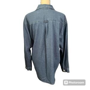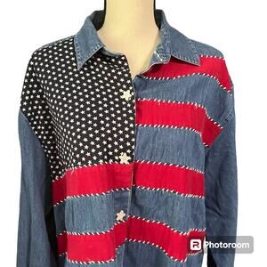 Carolina Blues | Women's Embroidered USA America Flag Denim Shirt Sz XL