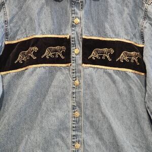 Carolina Blues Womens Vintage Denim Gold Elephant Button Up Blouse Size 16
