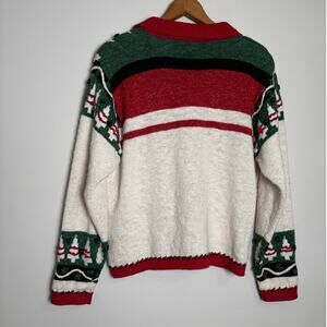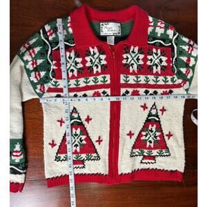 Carolina Colours Christmas Cardigan Sweater Sz S Full ZIp Embroidered VTG 90s