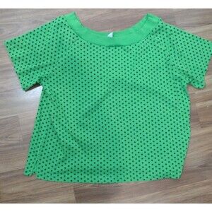Carolina Colours Plus Womens 3X Green Black Polkadot Blouse Chic Stylish