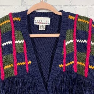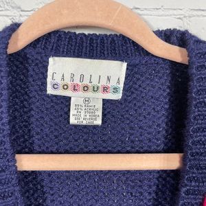 Carolina Colours Sweater Medium Blue Button Up Chunky Knitted Cardigan Vintage