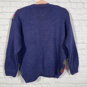 Carolina Colours Sweater Medium Blue Button Up Chunky Knitted Cardigan VTG Y2K