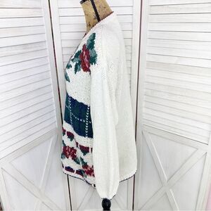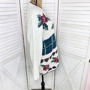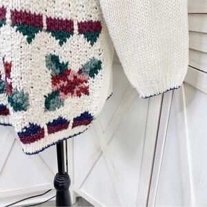 Carolina Colours Vintage Floral Chunky Sweater Cream Maroon Pink Medium