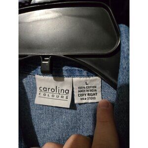 Carolina Colours Womens Elephant Palm Tree Beaded Denim Vest Size Large Safari