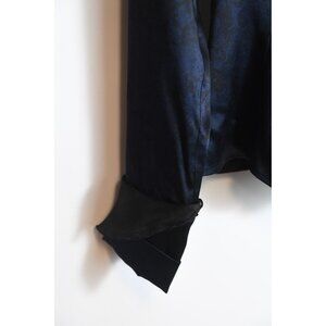 This Carolina Herrera navy black ruffle blouse is made from 100% silk satin, making it a luxurious and elegant choice for various occasions such as parties, formal events, workwear, and casual outings. The blouse features a floral pattern, V-neckline, long sleeves with classic/fitted sleeves, and button closure. With a regular fit and a designer theme, this blouse in size M is perfect for the summer, fall, and spring seasons, adding a touch of sophistication to any outfit.
