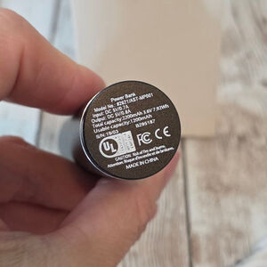 This is a new Carolina Herrera Bad Boy power bank, model number B2B21/LAST-MP001, still in its original box. The cylindrical power bank is black with silver accents and features the 'BAD BOY CAROLINA HERRERA NEW YORK' logo. It comes with a white USB charging cable. The power bank has a 2200mAh capacity and input/output of 5V/1.0A. The item is in pristine condition, showing no signs of wear or use.