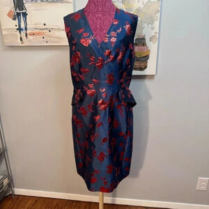 Carolina Herrera Blue Floral Print Knee Length Dress and Jacket Woman Size XL