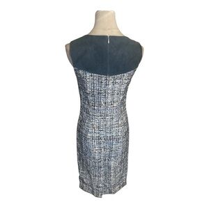 Carolina Herrera Blue Tweed Fitted Sheath Dress Midi Italy Size 2 Work Party