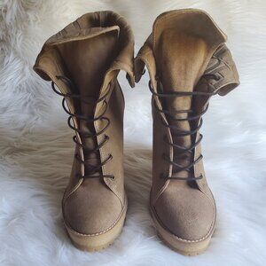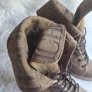 Carolina Herrera Brown Suede Platform Wedge Lace Up Boots SZ 8.5
