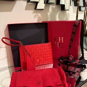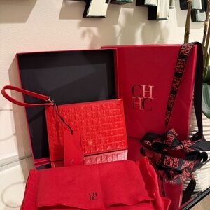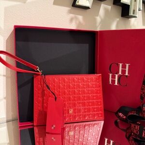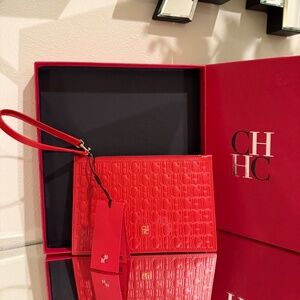 Brand new with tag and box Carolina Herrera Clutch in stunning red leather