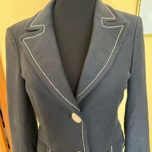 Carolina Herrera Dark Blue Blazer with Light Stitching size 2