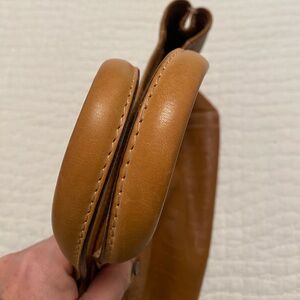 Don’t miss this closet clean out authentic CH Carolina Herrera Tote in light brown with Brass Hardware, Natural Handles, Open Top, Single Interior Pocket and Protective Feet at Base. Approx measurements: