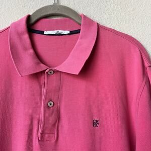 tags: Carolina Herrera, CH polo, men’s designer polo, pink piqué shirt, luxury menswear, short sleeve polo, classic style, summer fashion, preppy casual, embroidered logo polo