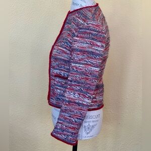 Carolina Herrera Red Tweed Collarless Jacket Size 2 EUC!
