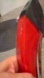 Elegant stiletto-shaped perfume bottle. Striking red and black design. Perfect for display.