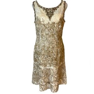 Carolina Herrera Rhinestone Beaded Floral Embellished Sheath Dress Size 6 Gold