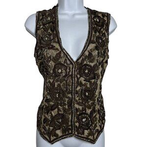 Carolina Herrera Runway silk heavily beaded Vest Top womens size 8 Vintage